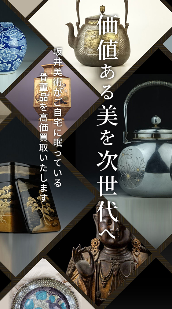 石川県野々市市の坂井美術では、美術品、骨董品、書画をはじめ、茶道具・書道具・中国美術・アンティークなど、幅広い品物の買取を行っております。